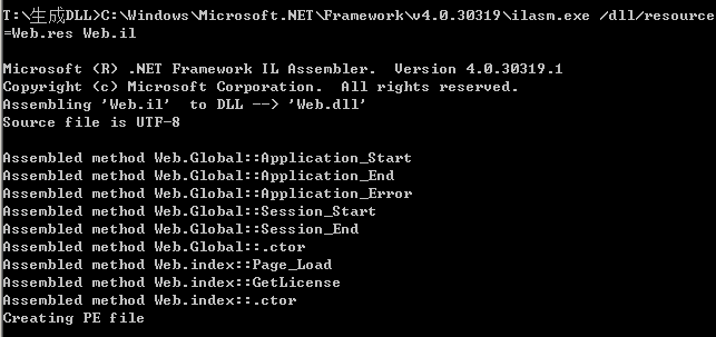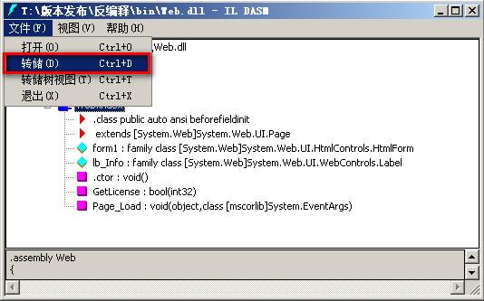 把dll文件转储为*.il文件存到某个指定文件夹里,得到Web.il和Web.res两个文件,有时也会有*.resource文件