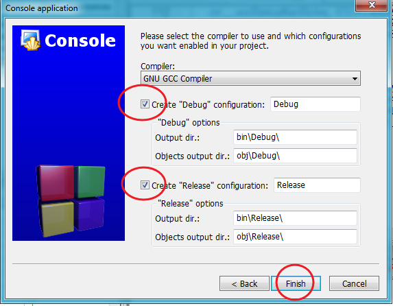 Debug 和 Release 都选上,选任意一个也行。编译器也是在这里选择的,这里显示的是默认设置的。点击完成。