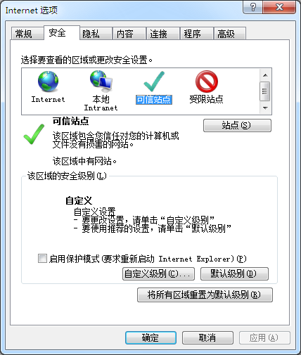 图13可信站点安全设置对话框