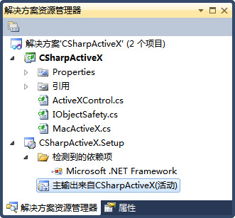 C#开发的ActiveX控件类库不像OCX那样可以直接通过regsvr32.exe注册(实际上,微软提供了替工具regasm.exe,但由于这种方式要不能实现自动升级,所以本文就不介绍了),要使控件类库运行于浏览器端,可以采取两种方式,一种是将控件类库打包为MSI安装包,然后直接在浏览器端安装;另一种是将MSI再封装为一个CAB包,这个CAB包就是一个ActiveX控件了,可以将它随应用程序一并发布,浏览器端访问包含有该控件的页面时,就会自动提示安装了。接下来就后一种发布方式进行详细讲解。