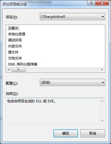 下面这步很关键,选中“主输出来自CSharpActiveX(活动)”项,如图7所示: