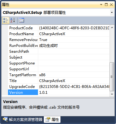 注意,此处还有一项关键工作要做,就是设置RemovePreviousVersions属性值为True,这样就会在升级时先自动卸载之前版本的控件。