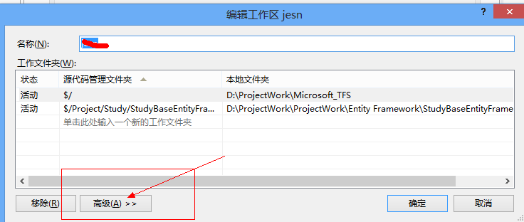 4、进入编辑工作区,tfs中“位置”选项中,默认的时本地,如果想独占签出,这里我们就必须设置成“服务器”