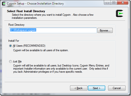 Install from Local Directory,这种模式与上面第二种模式对应,当你的Cygwin组件包已经下载到本地,则可以使用此模式从本地安装Cygwin。