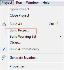 当编写好代码后,可以对你的工程进行编译,点击“Project”选项下的"Builder Project"项目即可。