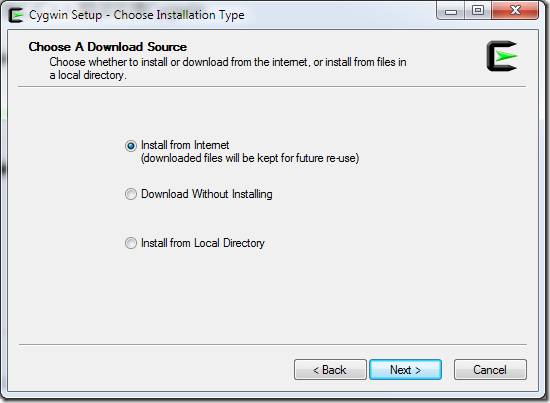 Download Without Installing,这种模式只从网上下载Cygwin的组件包,但不安装;