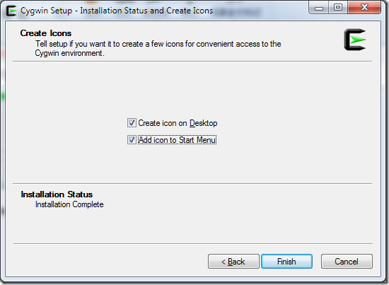 安装的时间依据你选择的组件以及网络情况而定。安装完成后,安装程序会提示是否在桌面上创建Cygwin图标等,点击完成退出安装程序。