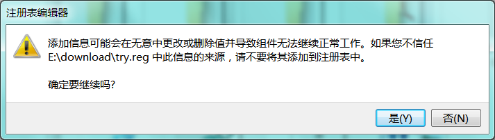 双击执行该文件,就会弹出以下提示框,提示你是否要修改注册表。