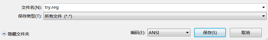 我们以记事本为例,打开记事本程序,选择“另存为”,文件名为“try.reg”,保存类型为“所有文件”(这一步很重要,否则保存后的文件会自动加上“.txt”扩展名),然后保存。于是就获得了一个空的REG文件。当然,你也可以选择直接修改记事本文件的扩展名,例如把文件“try.txt”改为“try.reg”。
