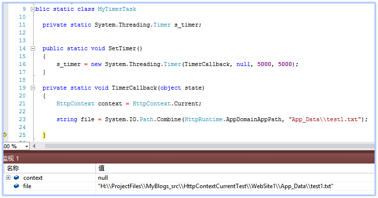 在定时器回调或者Cache的移除通知中,有时确实需要访问文件,然而对于开发人员来说, 他们并不知道网站会被部署在哪个目录下,因此不可能写出绝对路径, 他们只知道相对于网站根目录的相对路径,为了定位文件路径,只能调用HttpContext.Current.Request.MapPath或者 HttpContext.Current.Server.MapPath来获取文件的绝对路径。 如果HttpContext.Current返回了null,那该如何如何访问文件?