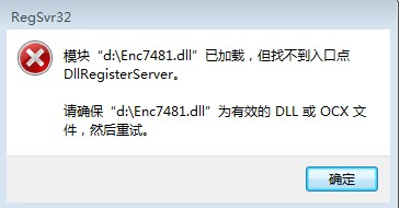 手工注册该DLL也报错:模块已加载,但找不到入口点DLLRegisterServer, 请确保XXX为有效的DLL或OCA文件,然后重试。