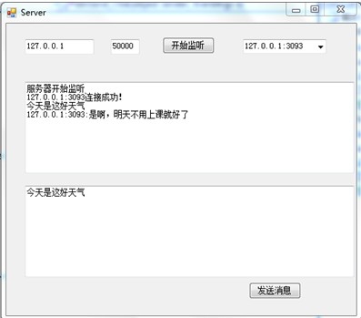 接下来,我们同一个简单的服务器和客户端通信的案例,来看下Sokcet的具体用法,效果图如下: