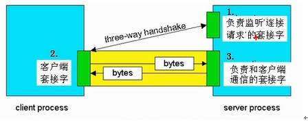 通过上图,我们可以看出,首先服务器会创建一个负责监听的socket,然后客户端通过socket连接到服务器指定端口,最后服务器端负责监听的socket,监听到客户端有连接过来了,就创建一个负责和客户端通信的socket。