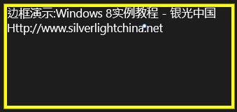 Border是最后要提及的布局控件,由于它不是派生自Panel类,所以放在最后讲述。Border是Windows store应用中常见的布局控件之一,主要目的是显示一个边框在一个或者多个对象外围。