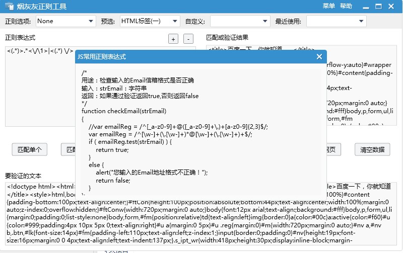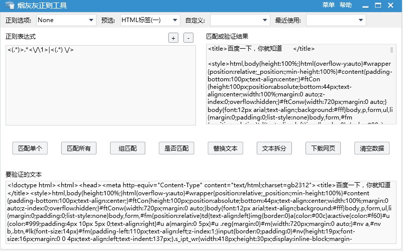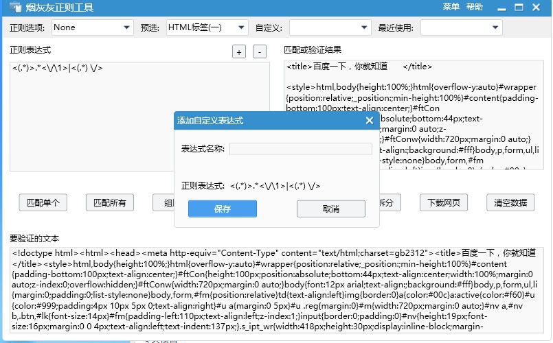 2) 程序内置了部分表达式, 此处是选择内置的"HTML标签"表达式