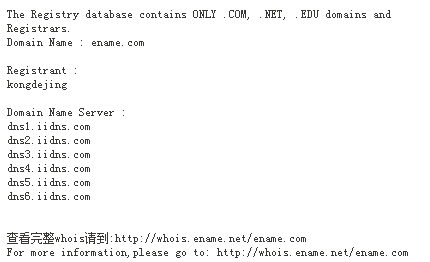 对于这种方法,虽然实现起来很简单,但是对于在Godaddy.com平台或者是国内的厦门易名网注册的 域名来说,只能查到一个大概,而无法查到具体真正的 domain 的信息,如下: