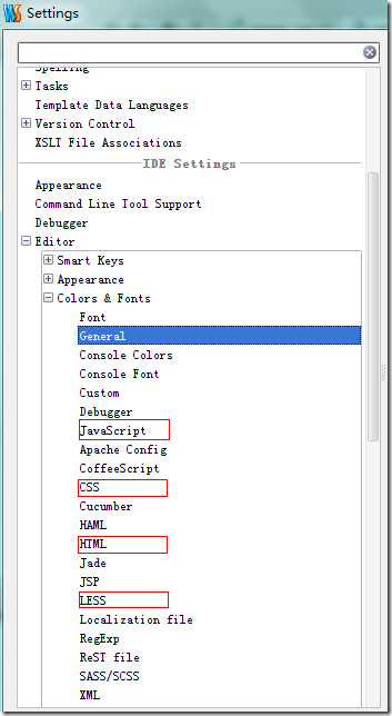 不同语言有各自的语法高亮规则,但有一部分是通用的(General),我们首先来设置General,然后再根据需要设置不同语言的语法高亮。