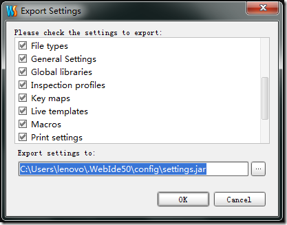 File > Export Settings导出用户设置。如下图,你可以选择要导出哪些类型的设置,也可以选择导出到哪个目录下。