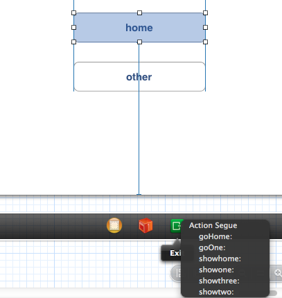 只要你在每个viewcontroller中重写了-(ibaction)name:(uistoryboardsegue *)segue,那么当你直接拖线指向Exit图标的时候就会出现你所有实现的方法,当你选择哪个方法就返回到实现这个方法的viewcontroller