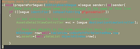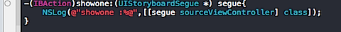 4、返回任意一个viewcontroller,官方称 unwind segues,如果你想让一个viewcontroller可以在其他任意的viewcontroller直接导航回来那么只需要在这个viewcontroller下重写以下方法