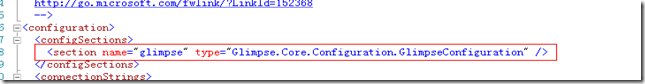 基本上安装完成后就可以使用了,但在使用之前,先来看看Web.Config有多了什么,在一开始的configSections中增加了「glimpse」的设定