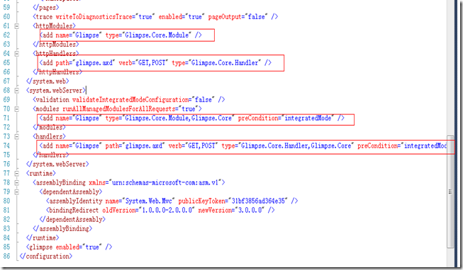 通过NugGet安装Glimpse,在Web.Config加了哪些东西