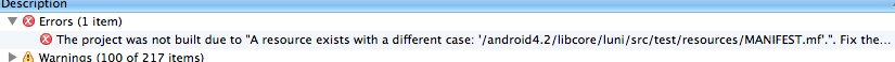 1、首先eclipse安装adt和sdk,这个不说了,肯定都会,版本选择4.2,安装完成后,file-java project,起个名字,然后location选择android目录,等待,可以 看到源码都被加载,然后看一下报的错误,我的报了如下错误: