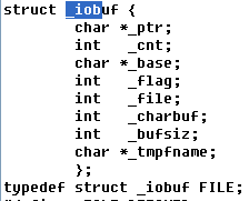 从上面代码可得_iob是FILE结构类型的,查看stdio.h中可以看到FILE结构体定义如下: