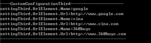 Console.WriteLine("--------------------------------------------------");输出结果为:与配置文件一样