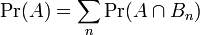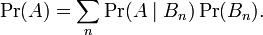 假设{ Bn : n = 1, 2, 3, ... } 是一个概率空间的有限或者可数无限的分割,且每个集合Bn是一个可测集合,则对任意事件A有全概率公式: