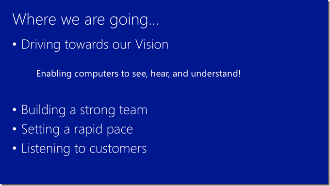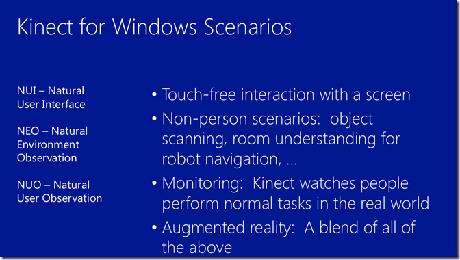 可以看出Kinect的愿景是使得计算机能够看到、听到、能够更加理解周围的人和环境。