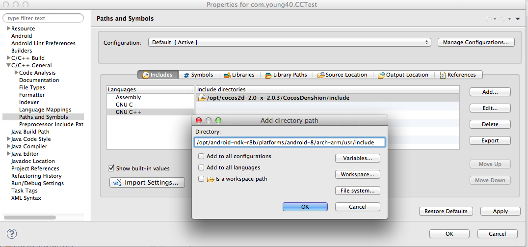 用同样方法将"/opt/cocos2d-2.0-x-2.0.3/cocos2dx"添加到项目中.