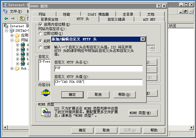 6.自定义HTTP头值: CP="CAO PSA OUR"