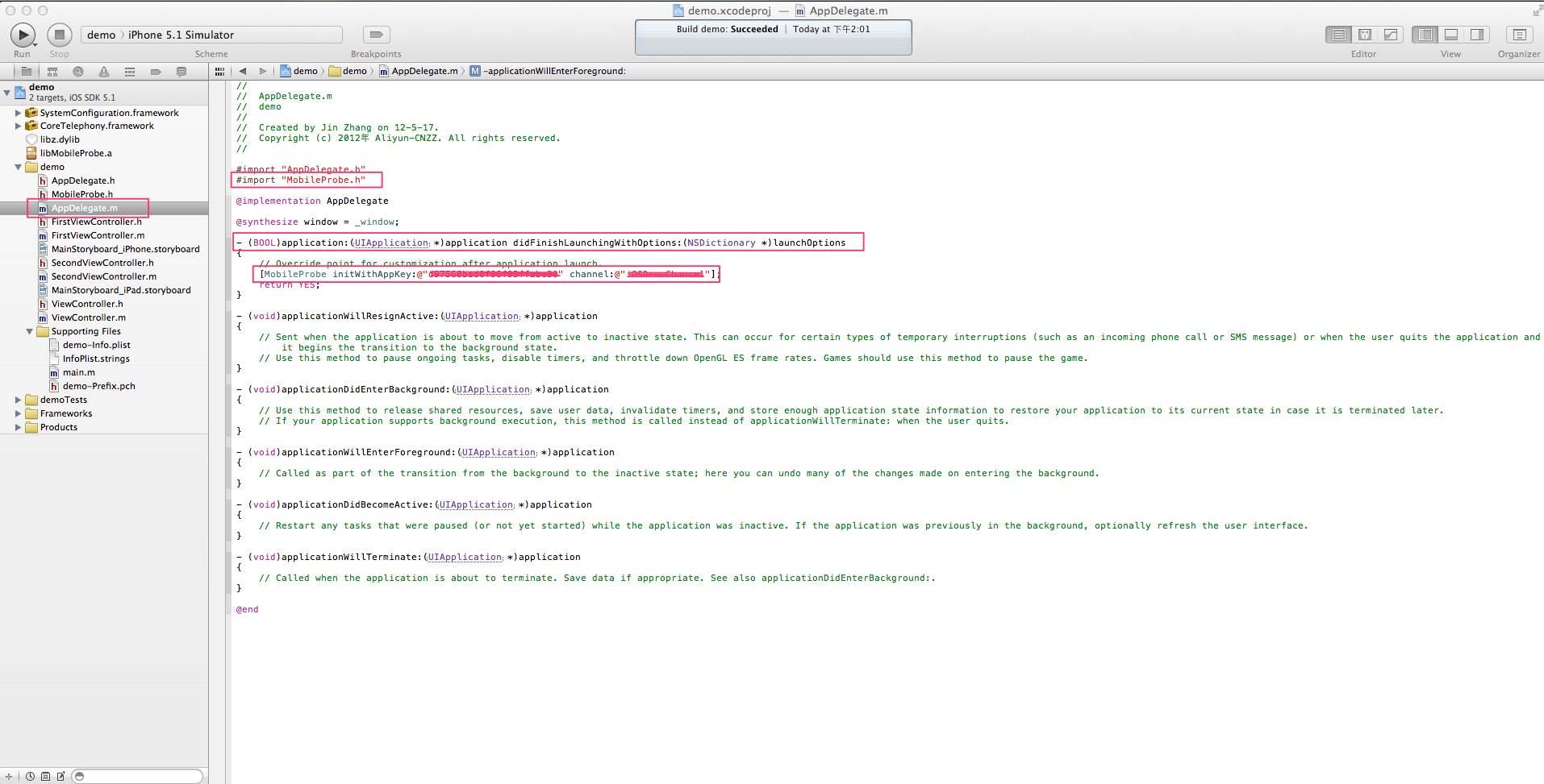 [MobileProbe initWithAppKey:@"1234567890abcdefghijk" channel:@"iOSChannel"];
