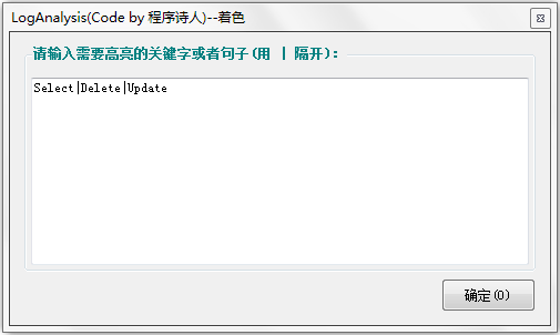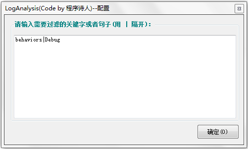 这个是配置窗体,多个关键字或者子句,利用竖线分隔开,程序会自动过滤掉含有这些关键字的文本行: