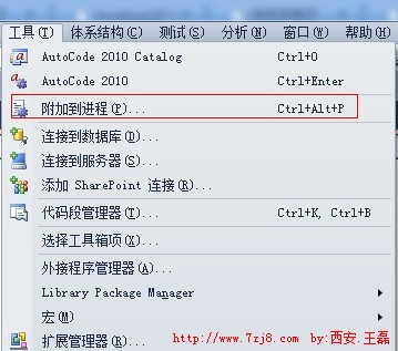 打开的Visual Studio 2010工具栏中的工具 => 附加到进程 => 点击确定,选择列表中的要调试服务名称 => 点击附加就可以调试了。程序中只需F9打点就可以调试,注意要windows服务保持版本一致哦。