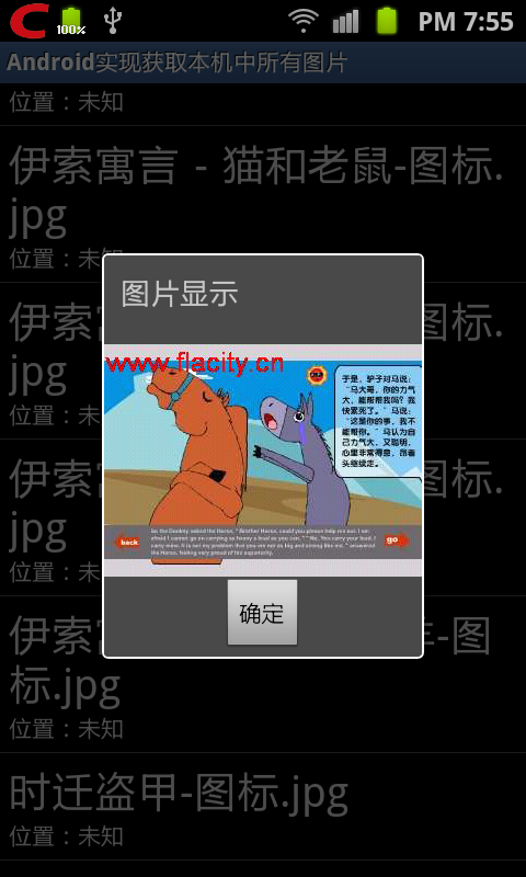 本示例演示如何在Android中实现获取本机中的所有图片,并进行查看效果。