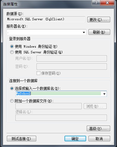 在这里填上你的服务器名或IP等地址以及选择你的数据库.