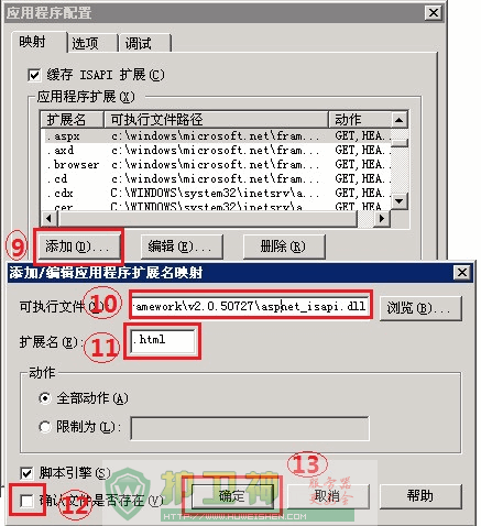 5、扩展名填写 .html (如果是 .htm 或者 任意你想要的扩展都可以 前提是以后的应用程序扩展列表里边没有该扩展)