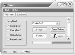 然后加入一个SkinData控件,把Active属性设为True。再单击SkinStore属性的带省略号的按钮,选择VCLSkin自带的一个皮肤文件macos.skn。然后,编译,运行,结果如图9.19所示。