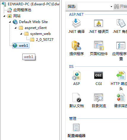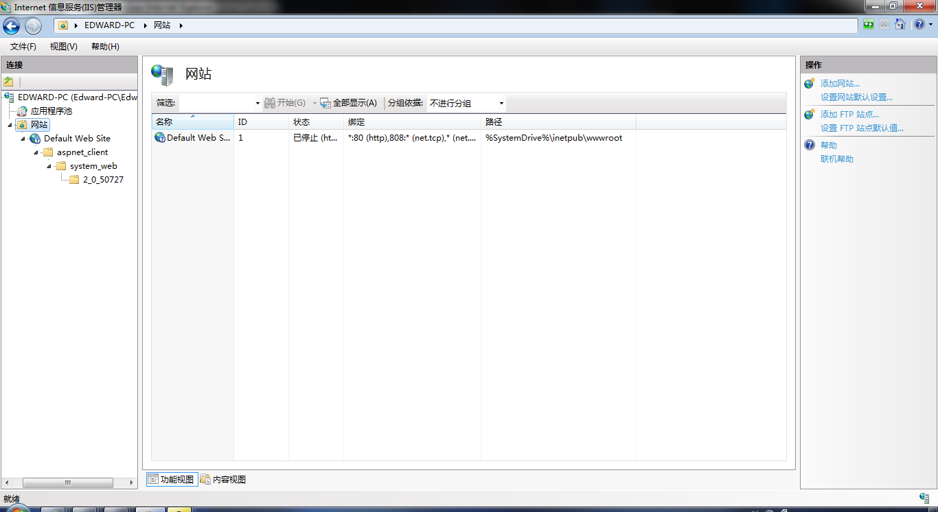 注意如果高级设置中网站的默认端口设置有相同的话,需要停止一个网站,然后启动另一个网站,如果端口不同的话就可以直接启动了。