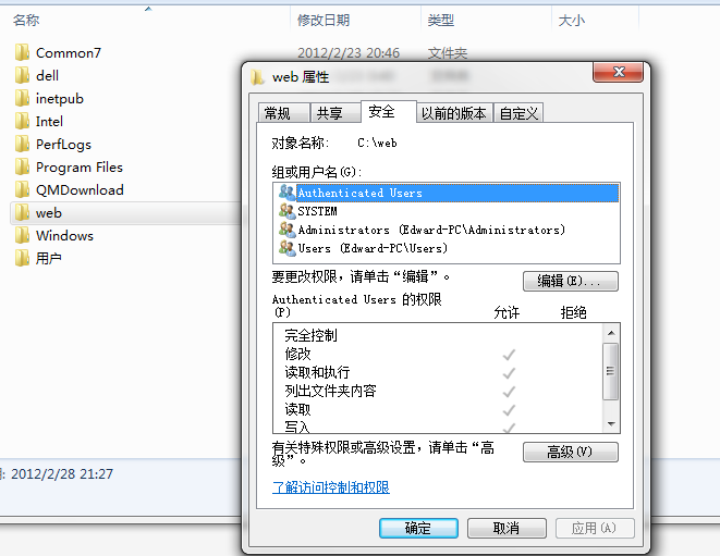 如果添加新网站,在高级设置中设置路径的时候,此网站文件夹需要有IUSER的访问权限,这是输入localhost才能进入这个新的网站的默认网页,比如可以把网站文件夹放到c盘也就是根目录下,如果放到桌面等目录下,那么运行的时候就会报没有权限访问的错误。