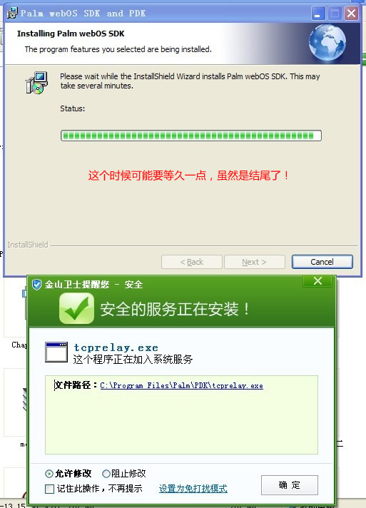 如金山、360等安全软件会跳出这个提示框,以下的步骤也会出现几次,直接允许它们。