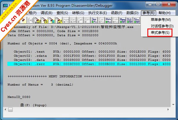 我勒个去,怎么都是乱七八糟的代码啊,这谁看得懂啊~别急嘛嘛嘛~~~啊嗯啊@#¥¥……哈哈,我们现在点击菜单中的“参考”→“串式参考”,如下图: