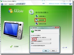 2)WinCE模拟器中,开始->设置->控制面板->PC 连接;更改连接方式为“我的连接”
