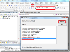 vs2005中启动调试,设备选择“Windows CE 5.0设备”,点“部署”