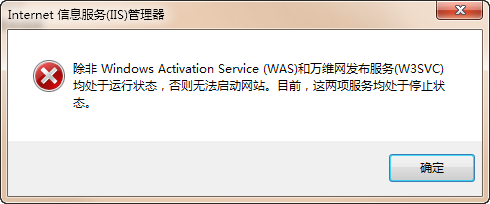 .我建了一个网站了,启动网站服务,却弹出这么一个错误,怎么办?(除非 Windows Activation Service (WAS)和万维网发布服务(W3SVC)均处于运行状态,否则无法启动网站。目前,这两项服务均处于停止状态。)