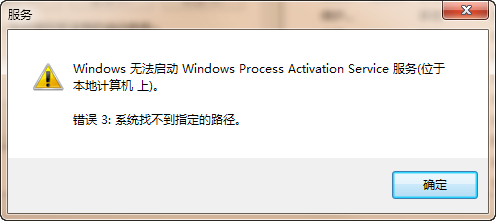Windows无法启动 Windows Process Activation Service 服务: 系统找不到指定的路径。