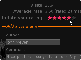 您的访客可以发表评论,可以评分,设置喜爱的相片,执行搜索,并可通过电子邮件或RSS源得到网站最新消息。