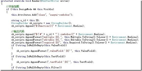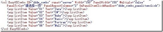 我们再看看这些控件如何加载的,如图-7所示.这是EasyUICombo控件的加载方式,其他控件大同小异.它其实继承的是DropDownList控件,所以有ListItem子项.被我改造了下就可以用到EasyUI中,是不是很简单咯
